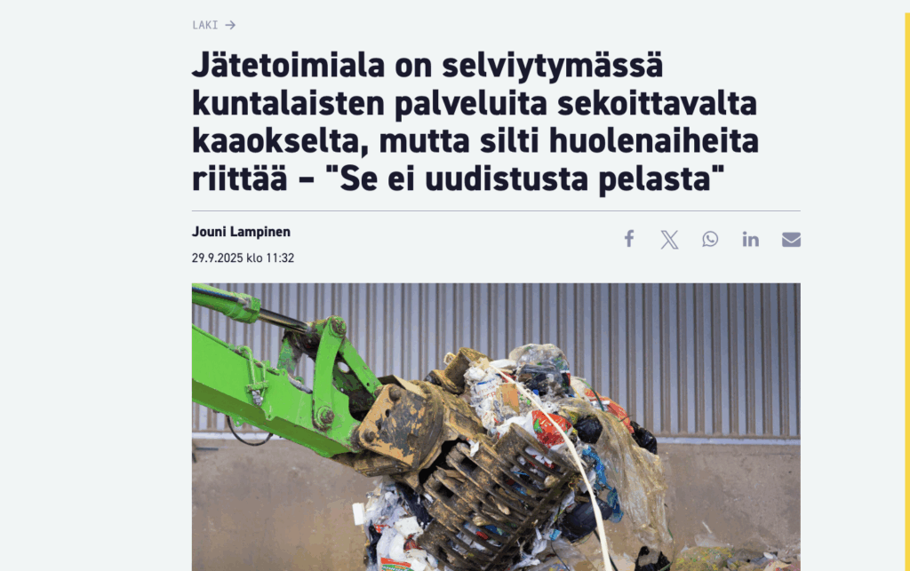 Kuntalehti: Jätetoimiala on selviytymässä kuntalaisten palveluita sekoittavalta kaaokselta, mutta silti huolenaiheita riittää – ”Se ei uudistusta pelasta”