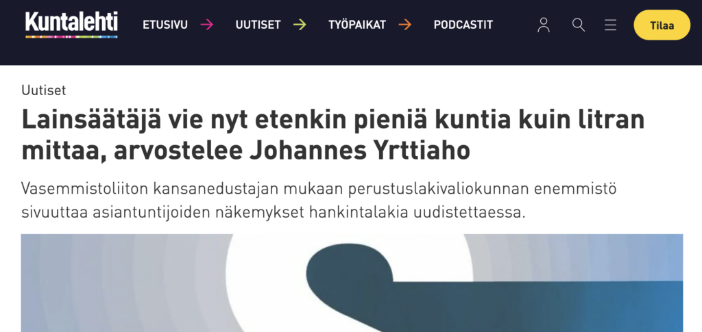 Kuntalehti: Lainsäätäjä vie nyt etenkin pieniä kuntia kuin litran mittaa, arvostelee Johannes Yrttiaho