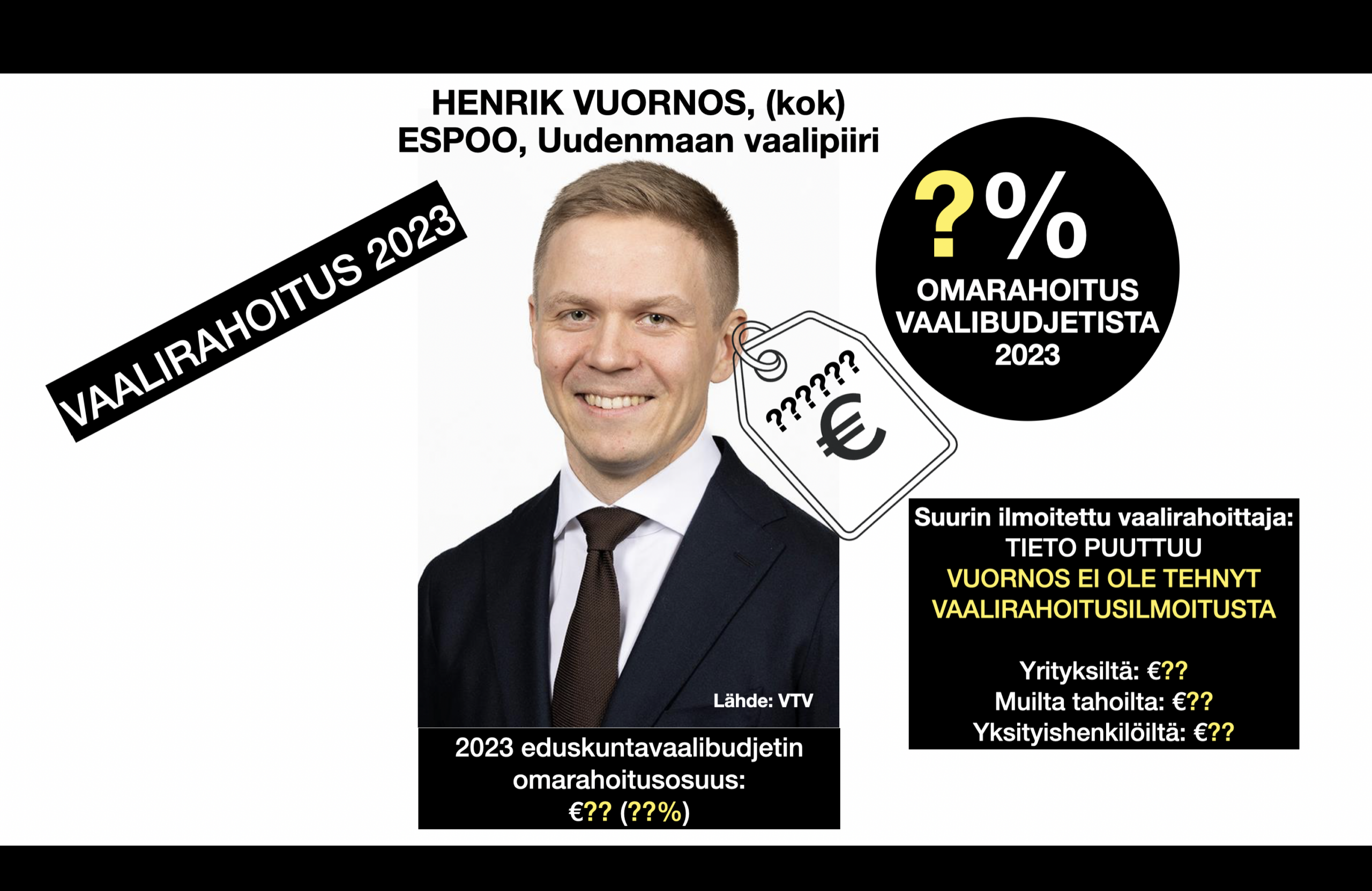 Vaalirahoitusanalyysi: Henrik Vuornoksen ilmoitus puuttuu – omarahoitusosuus ei ole tiedossa