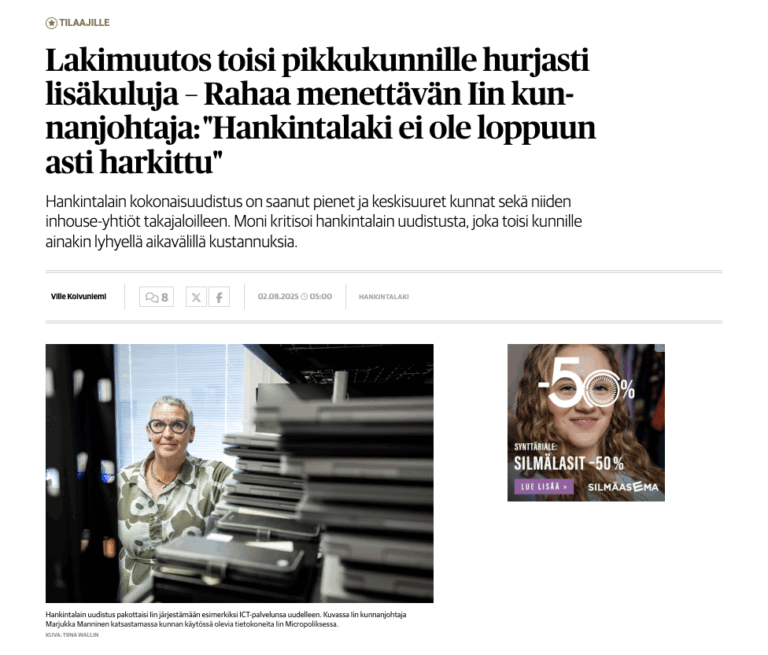 Kaleva: Lakimuutos toisi pikkukunnille hurjasti lisäkuluja – Rahaa menettävän Iin kunnanjohtaja: ”Hankintalaki ei ole loppuun asti harkittu”
